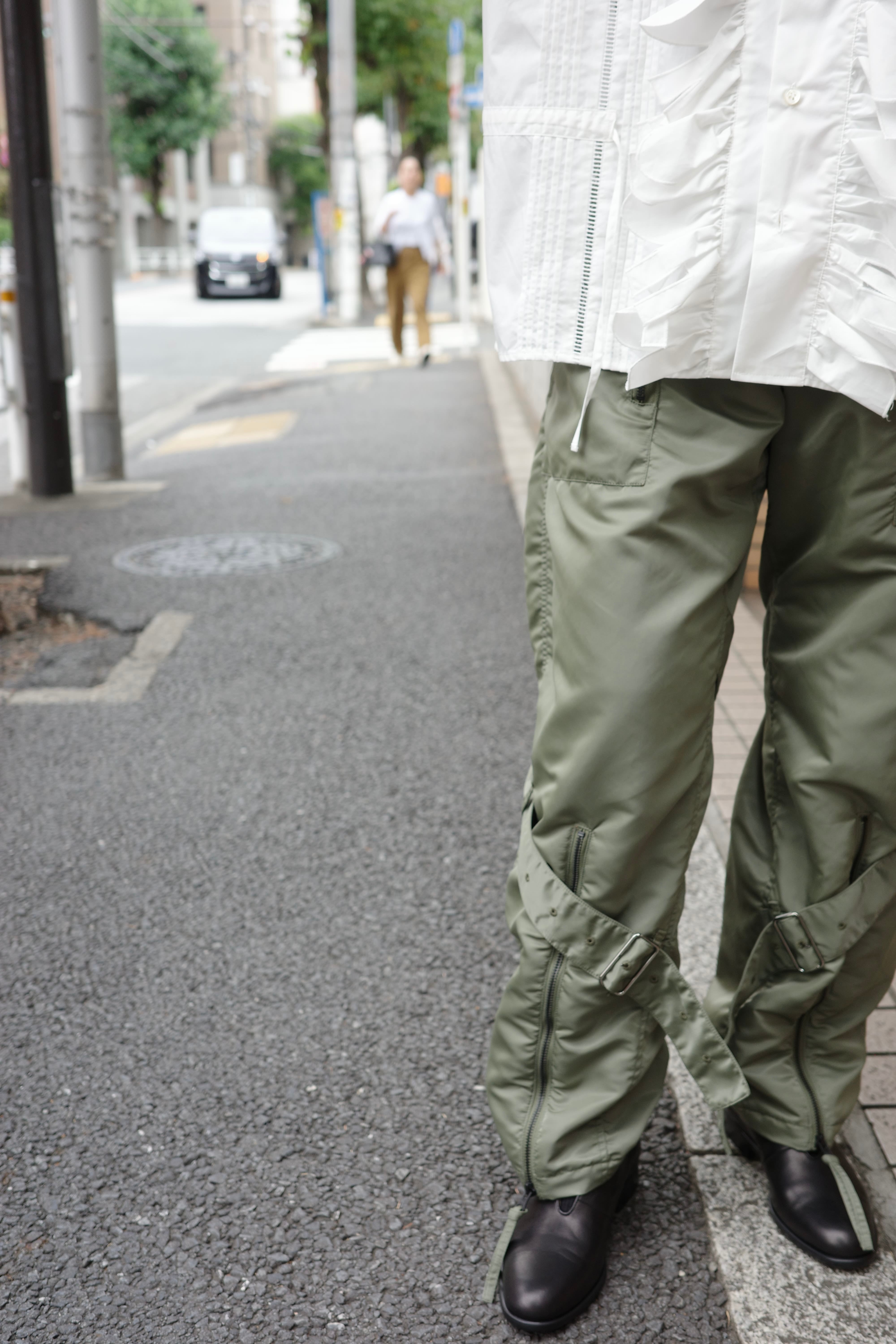 フライトPTです。ミリタリーなテイストのパンツです。 両サイドのポケットを開けていただき、裏地のオレンジをポイントとして見せていただいてもかっこいいです。裾に向かってベルトもございますのでデザインも,自由に変えていただく事が出来ます。 ウエスト部分は2箇所マジックテープになっております。 size(cm) ウエスト 74 ヒップ 104 股上 35 股下 67 ※若干の誤差はございます。 ご了承くださいませ。