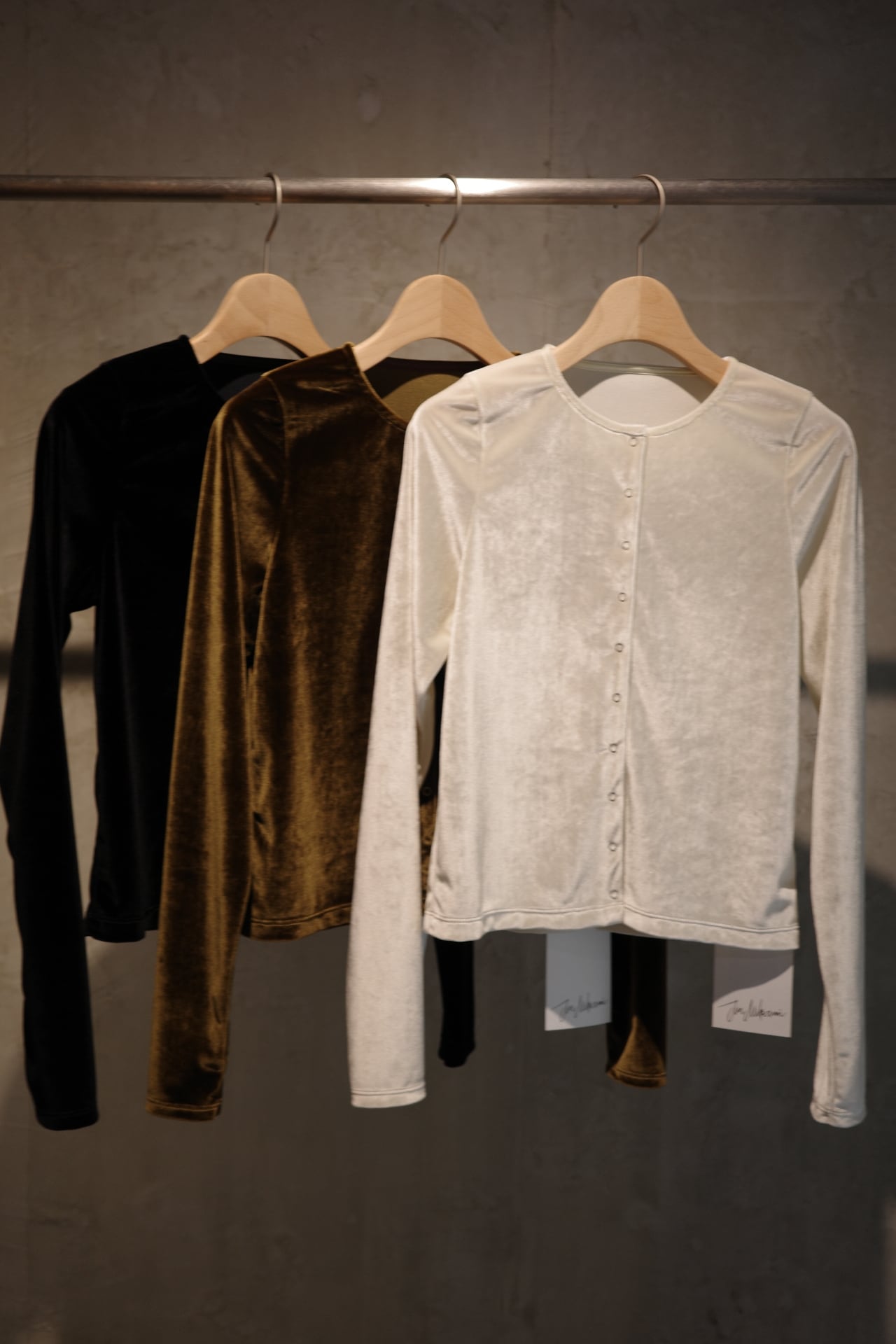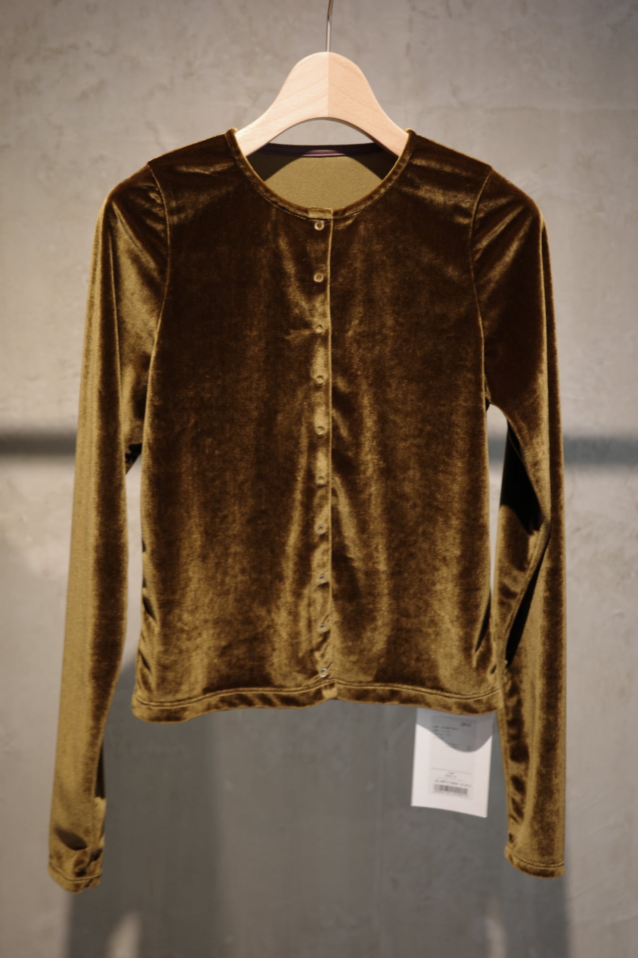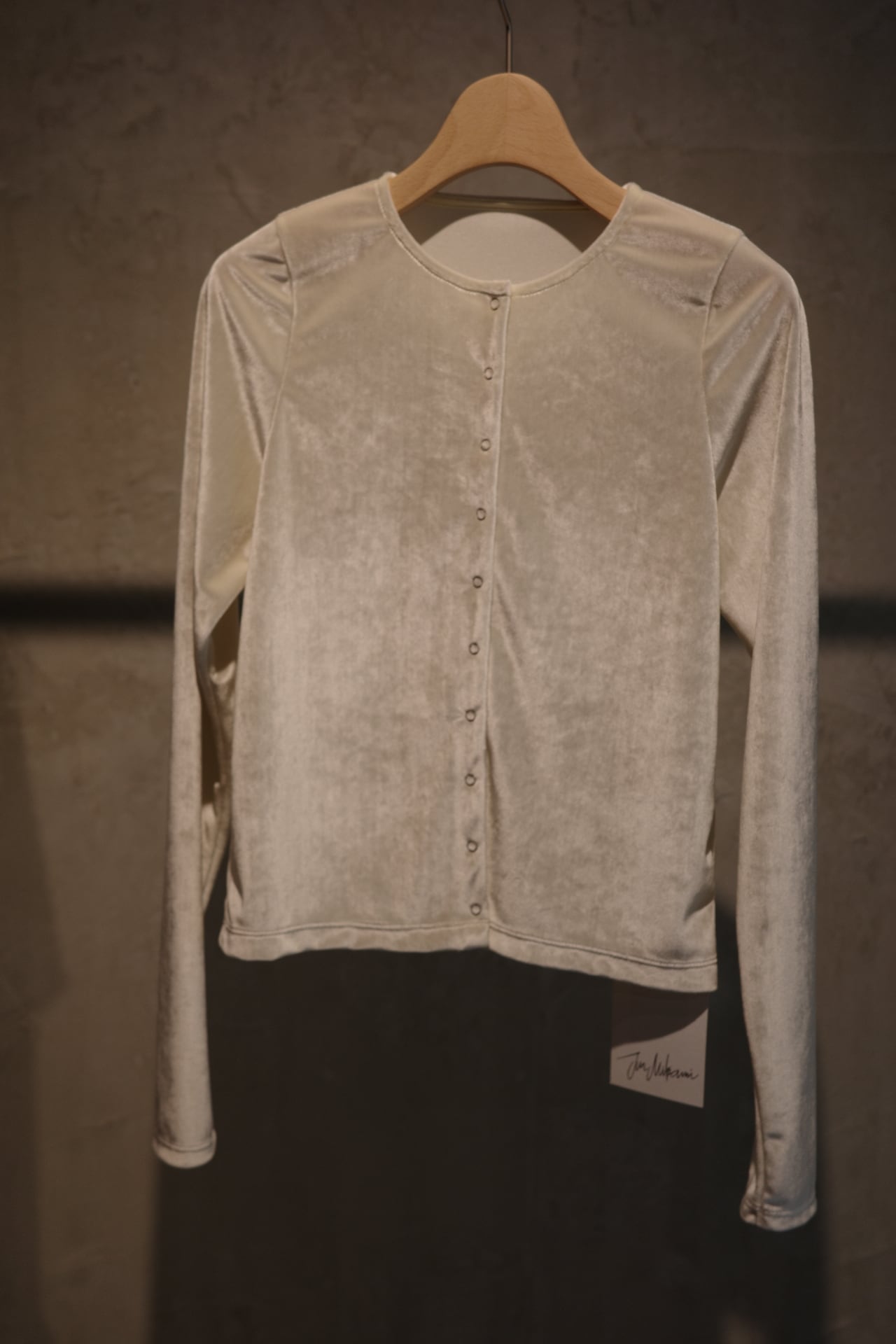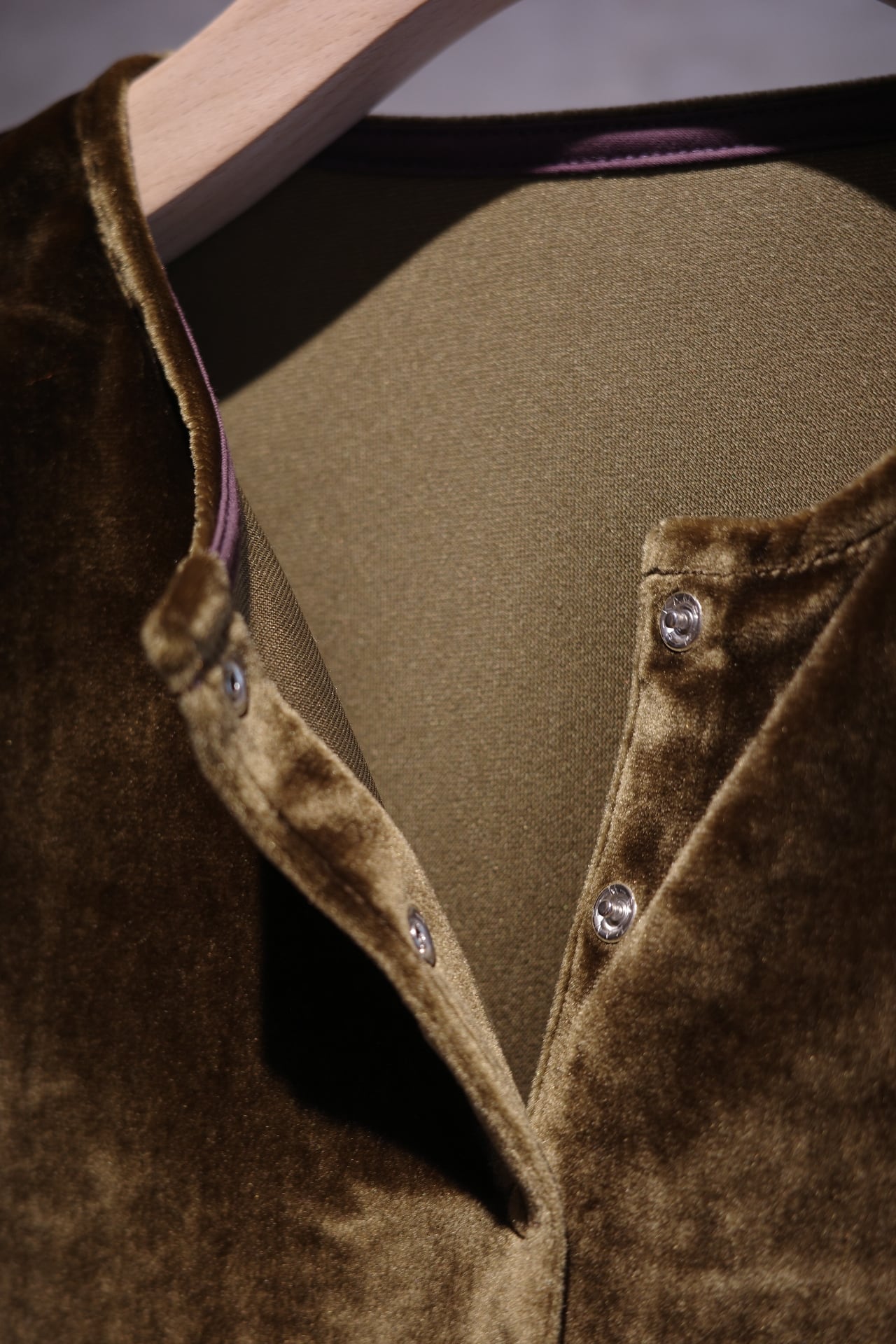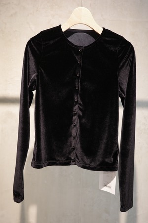 ベルベット素材のカーディガンです。 素材も美しく着心地も抜群です。 アームホールも細く見えてゆとりがあるので腕も綺麗に見せてくれます。 スナップボタンなので、閉じて1枚ぽく着ていただいても。 カーディガンとしても。 飽きのこない1枚です。 color ブラック、ブラウン、しろ size ONE SIZE