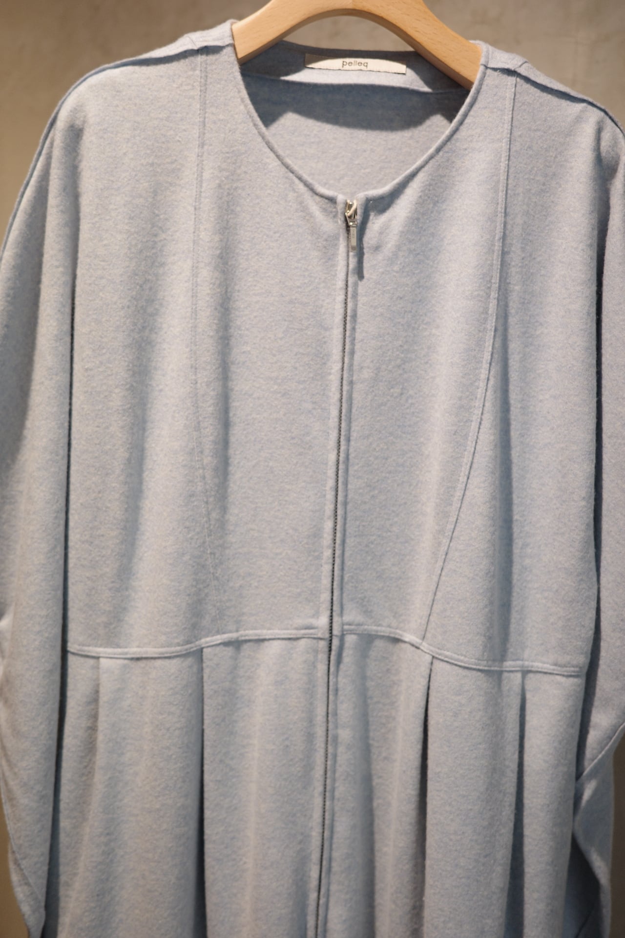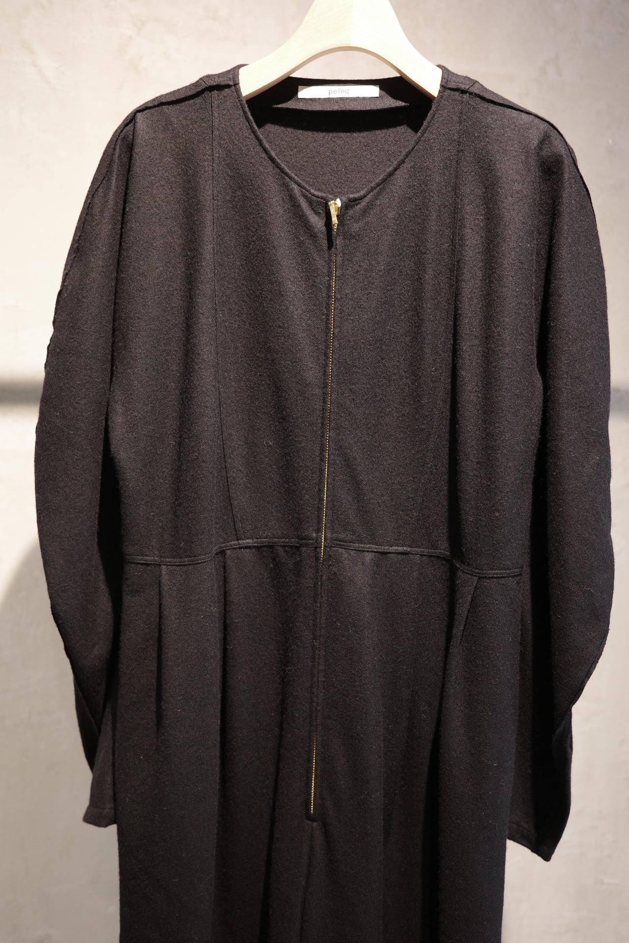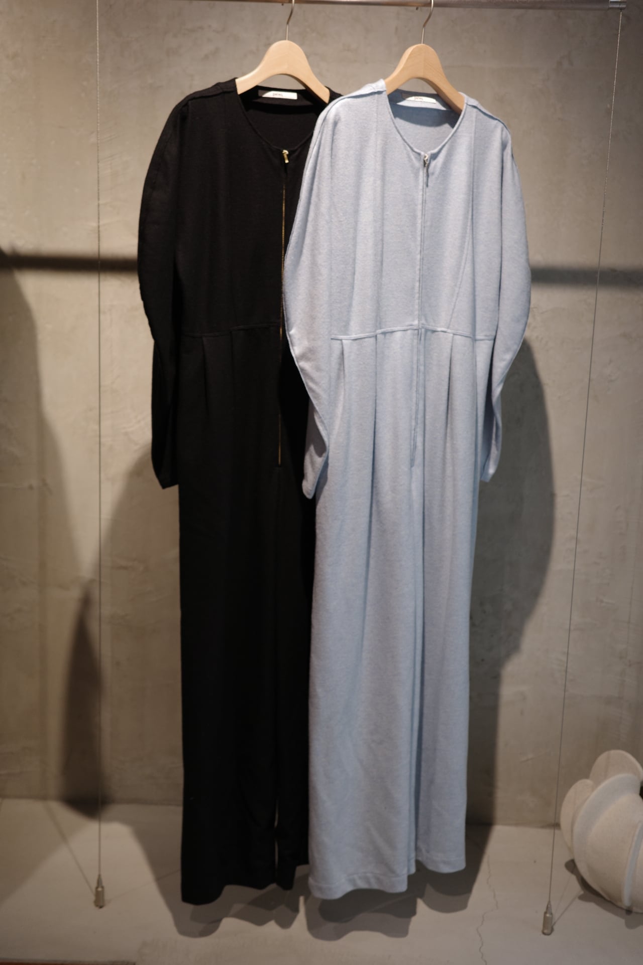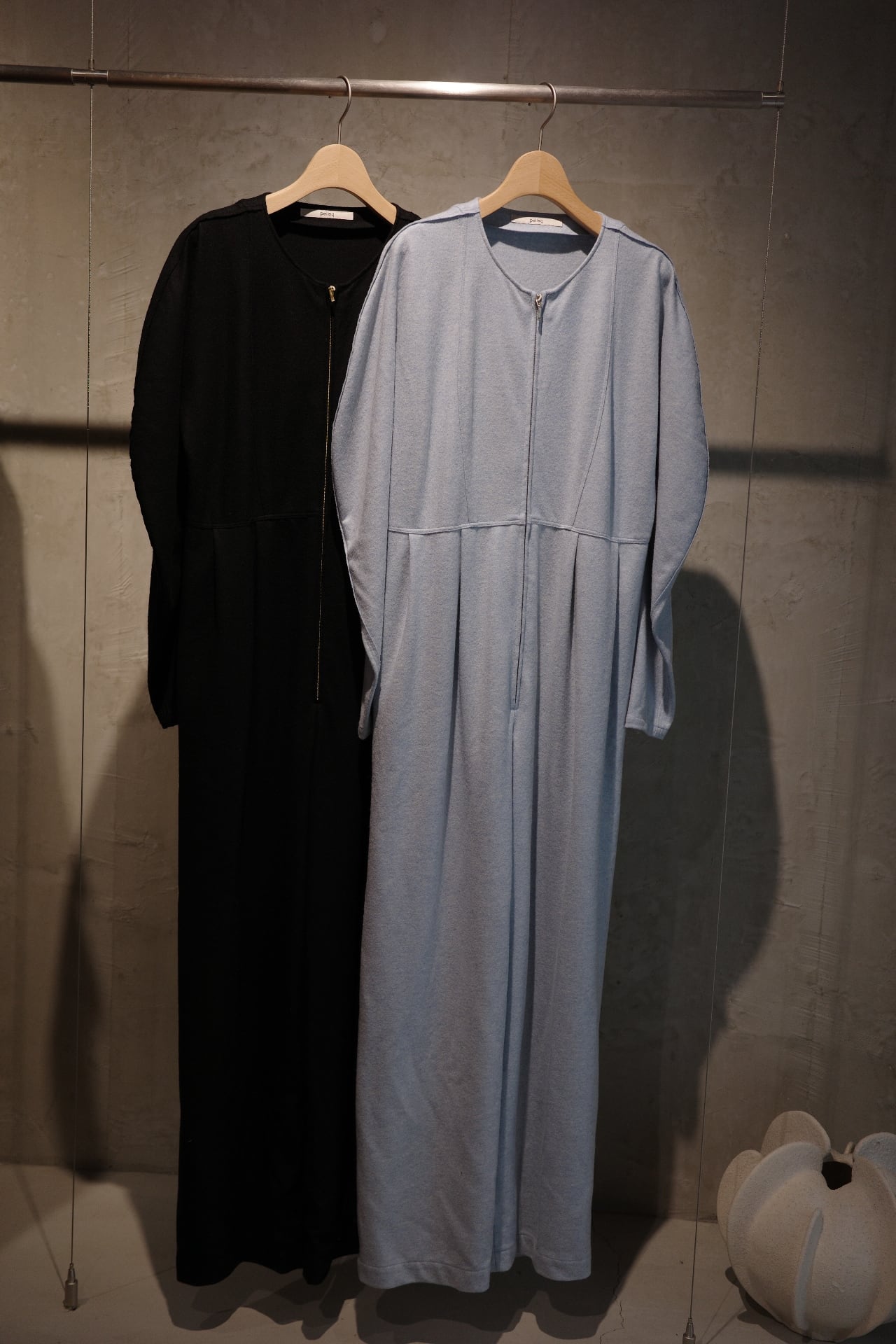 切り替えとダーツが入っていてシンプルながらも特徴のあるシルエットのジャンプスーツです。 腕の部分にも丸みがあり、ちょっとパフスリーブぽくもみえます。 中にカラーを重ねてもらっても印象が,変わります。シンプルながらも使えるジャンプスーツです。 color paleblue,black size free Material wool 80%、nylon 16%、other4% Linning cupra 100%