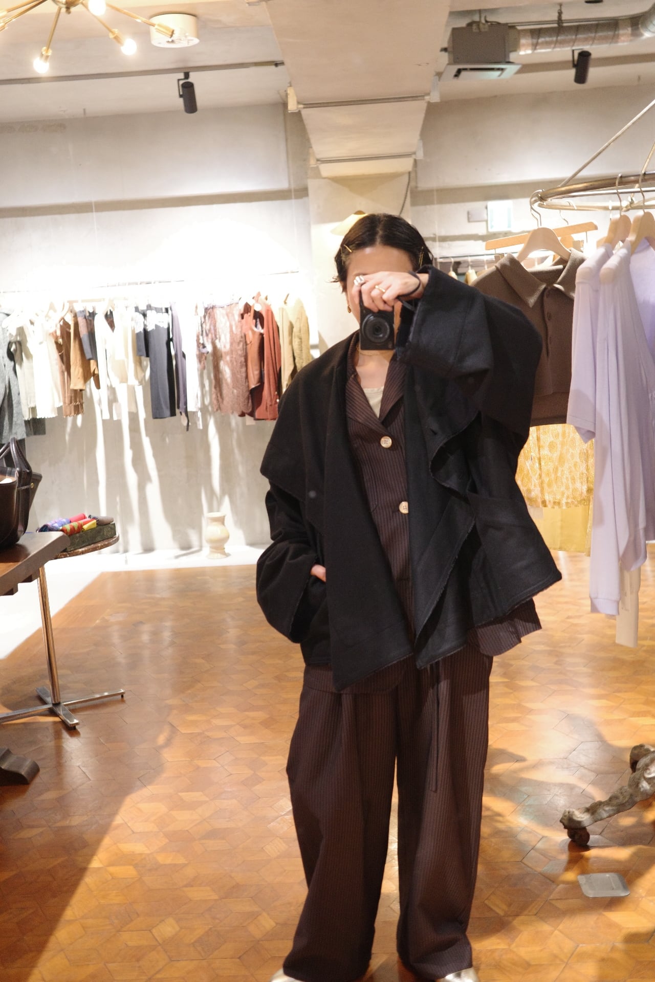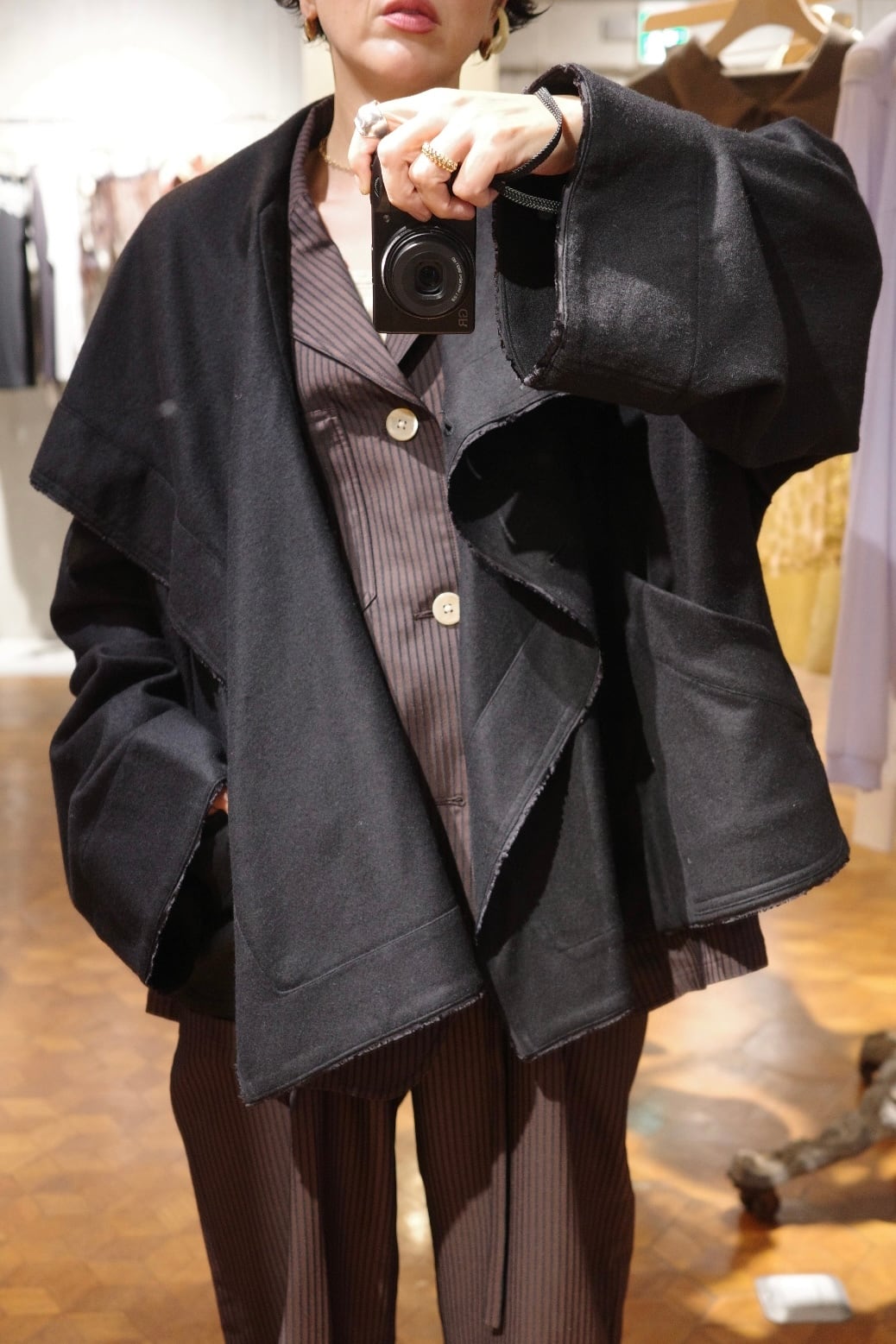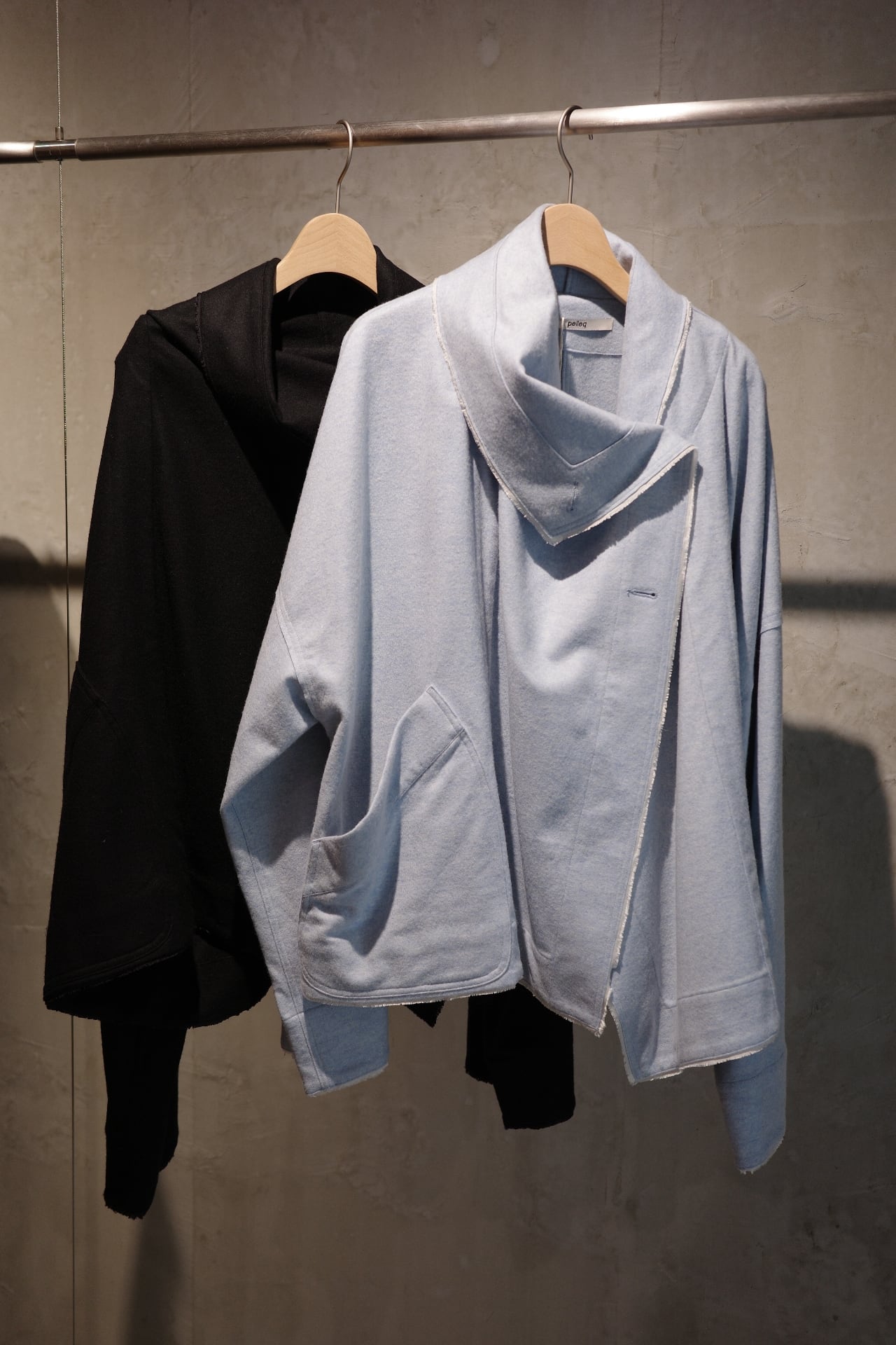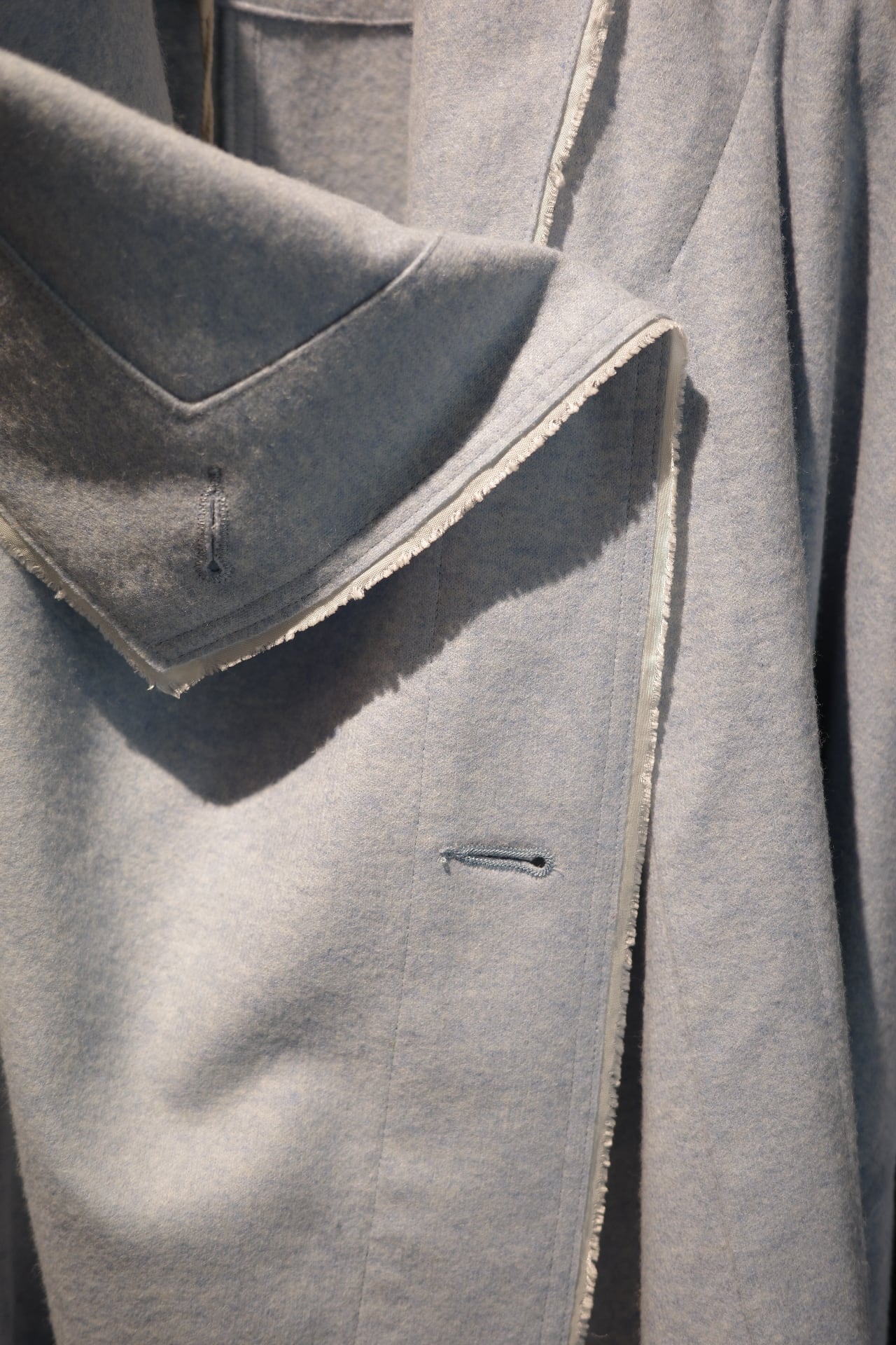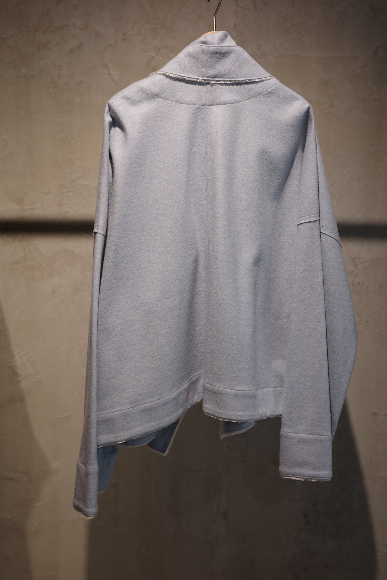 オーバーサイズのコートです。 ボタンの位置は3パターンございます。 お好きな場所で。印象も,それぞれ変わります。オーバーサイズ感なので ジャケットの上にそのまま重ねてもらってもラフ感もあり、お洒落に着ていただける万能なコートです。 color paleblue,black size free Material wool 80% nylon 16% other 4%
