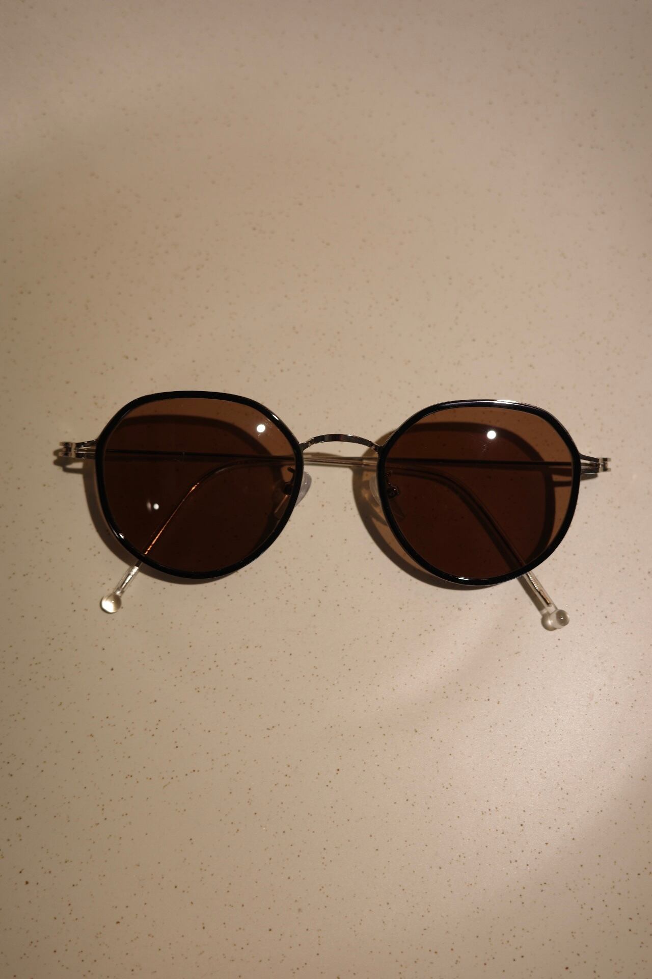 color brown 4角フレームのguarted レンズはUVカット使用で、軽量で付けてても疲れません。 ノーズパットのおさまりも良く落ちてきづらいです。 ブラックフレームにノーズ、テンプルはシルバー レンズはブラウンです。 色んな人に似合うデザインで、コーディネートを引き締めてくれます。 SIZE フレーム幅/11.8cm レンズ幅/4.8cm ブリッジ幅/2.2cm 天地幅/4.2cm テンプル/15cm Material フレーム/プラスチック、ステンレス レンズ/UVカット