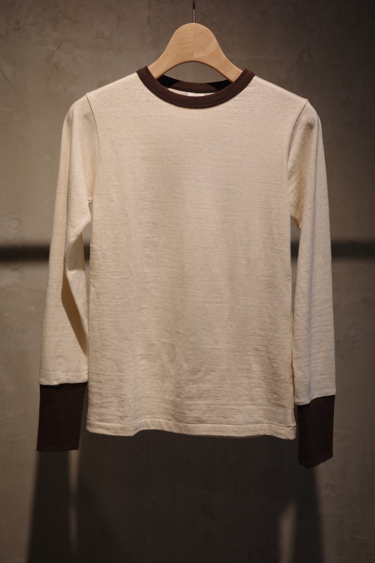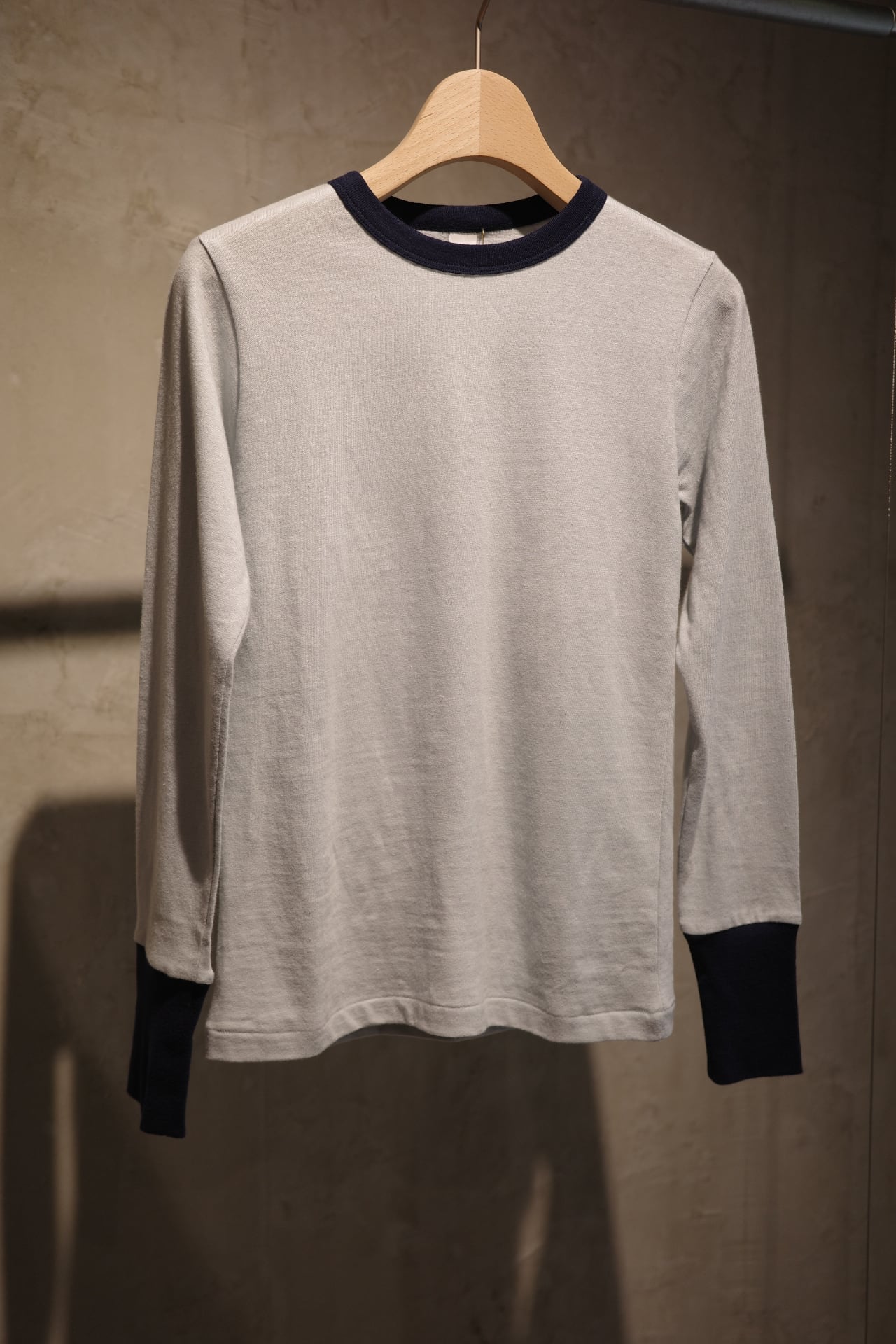 デッドストックの T シャツをイメージしています。 「落ち綿(※)」を再利⽤したサスティナブルコットンを使い、⾃然なムラとラフな⾵合いを再現しました。着た瞬間からヴィンテージのような雰囲気を醸しますが、洗濯を繰り返すことで柔らかさが増し、ムラが深まり、さらに良い⾵合いになっていきます。※⽷を作る⼯程で、綿をすく際に落ちる短い繊維のこと。通常は捨てられている綿くず。