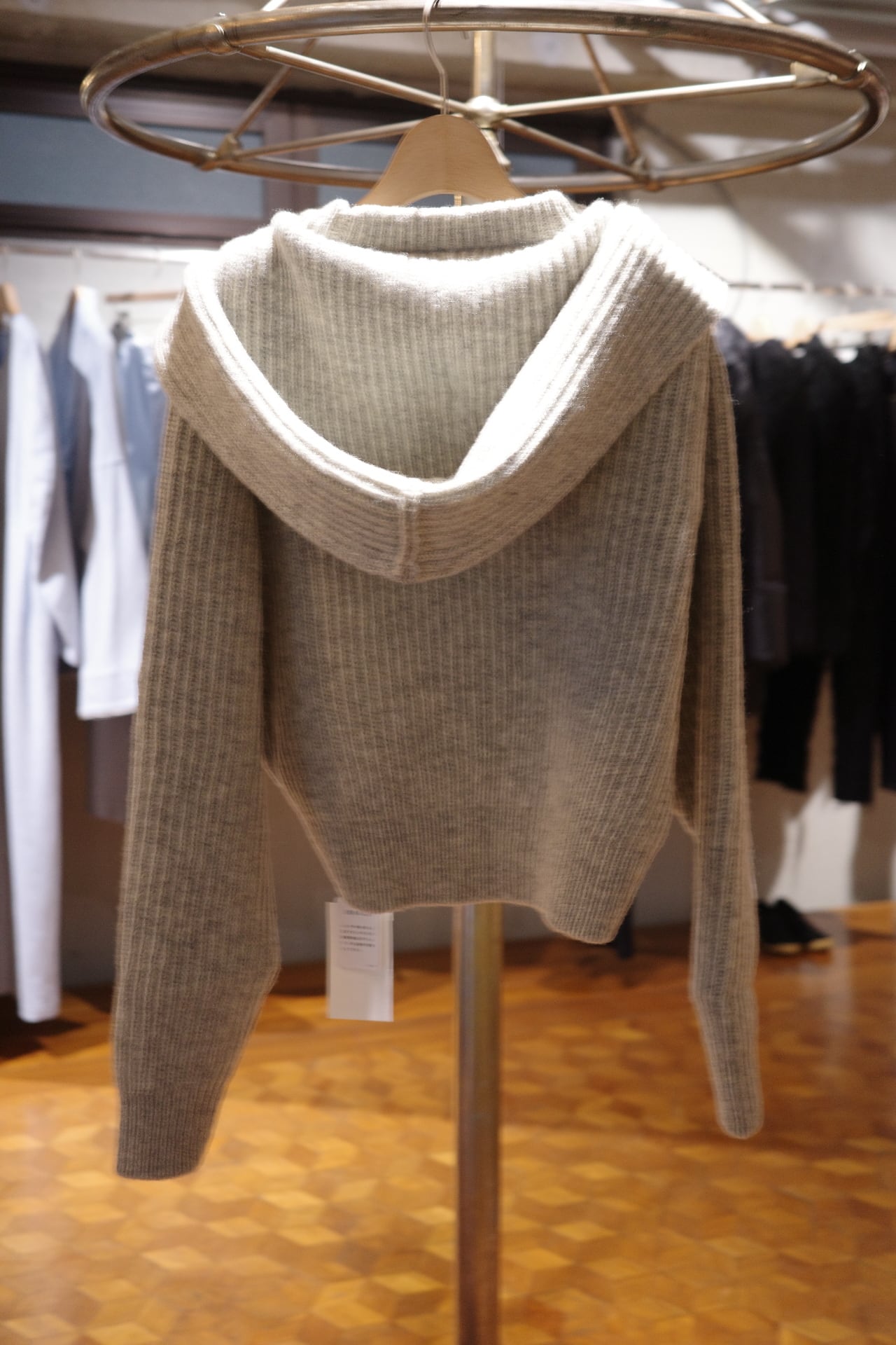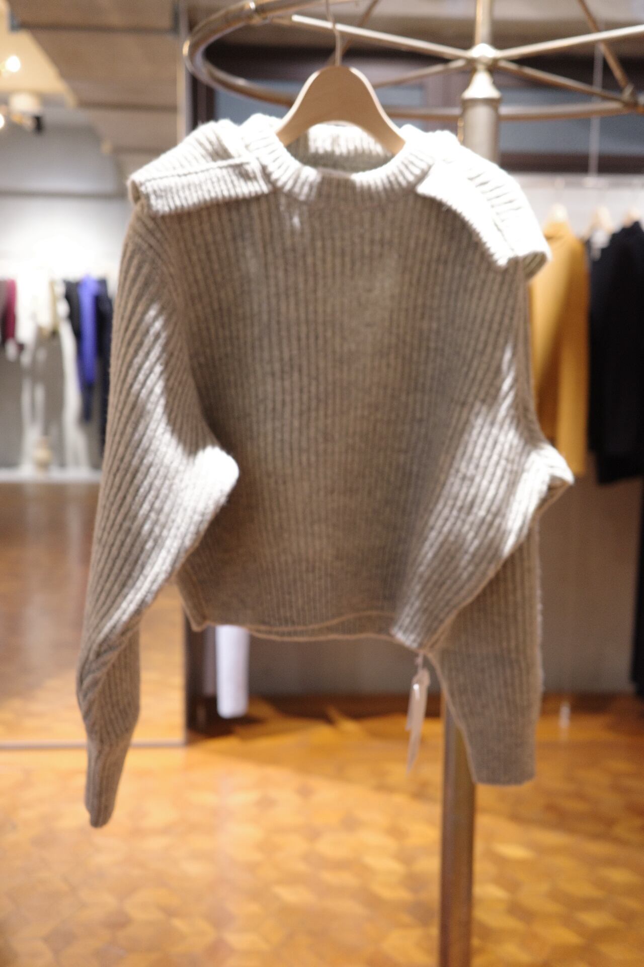 size/36 color/IVORY,TOP BROWN,TOP GREY quality/wool100% シェットランドウールをベースに3種の羊毛をブレンドし、紡績したオリジナルの糸を使用。 畦編み特有の厚みと弾力によりフードに自然な立体感を持たせ、ボリューム感のあるシルエットに仕上げた後付けフード仕様のプルオーバーセーターです。 ※畦編み/表目と裏目を交互に編んで凸凹の縦畝を作るニットの編み方です。 size/着丈46.5 肩幅45 身幅57 袖丈59 (cm)