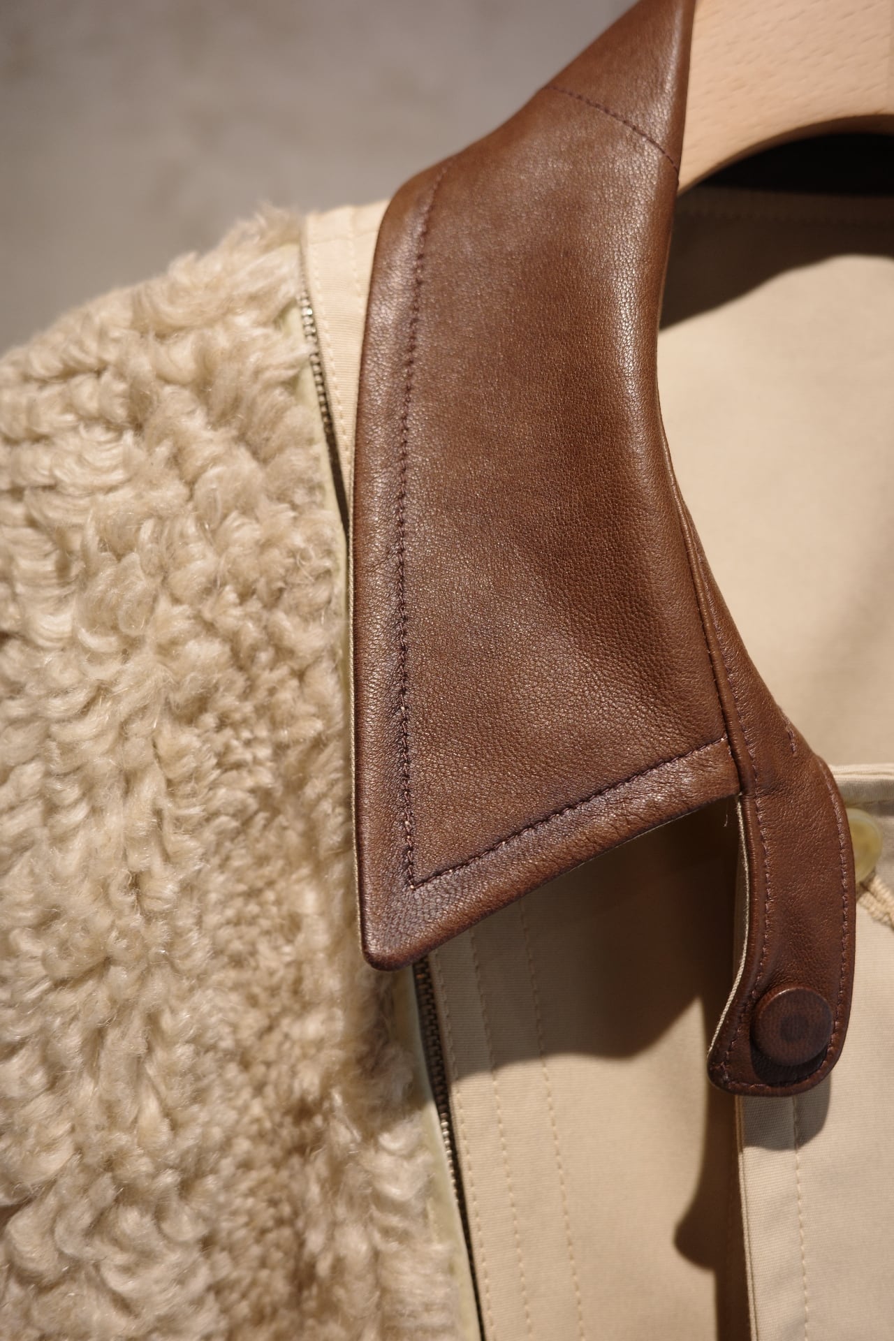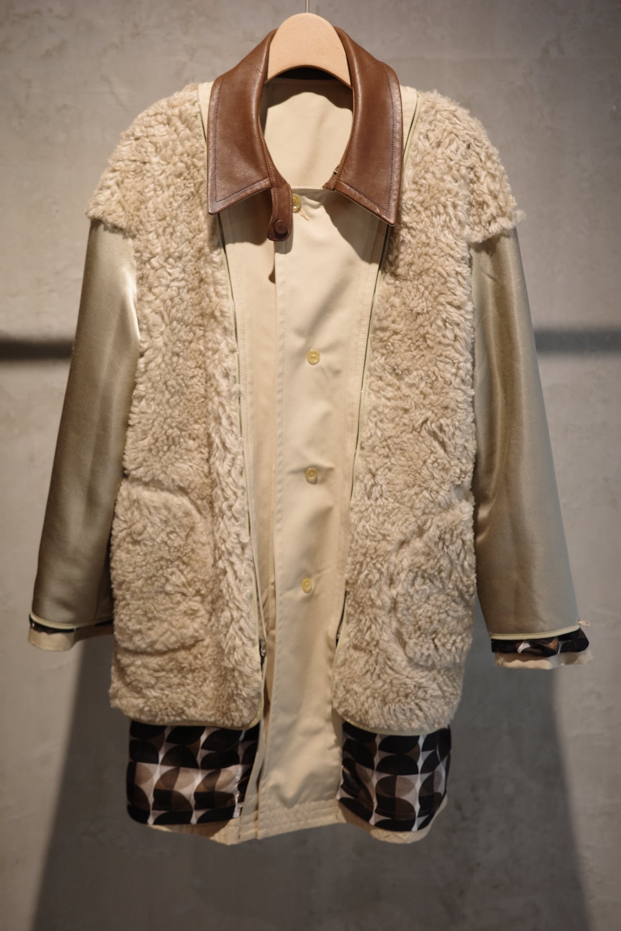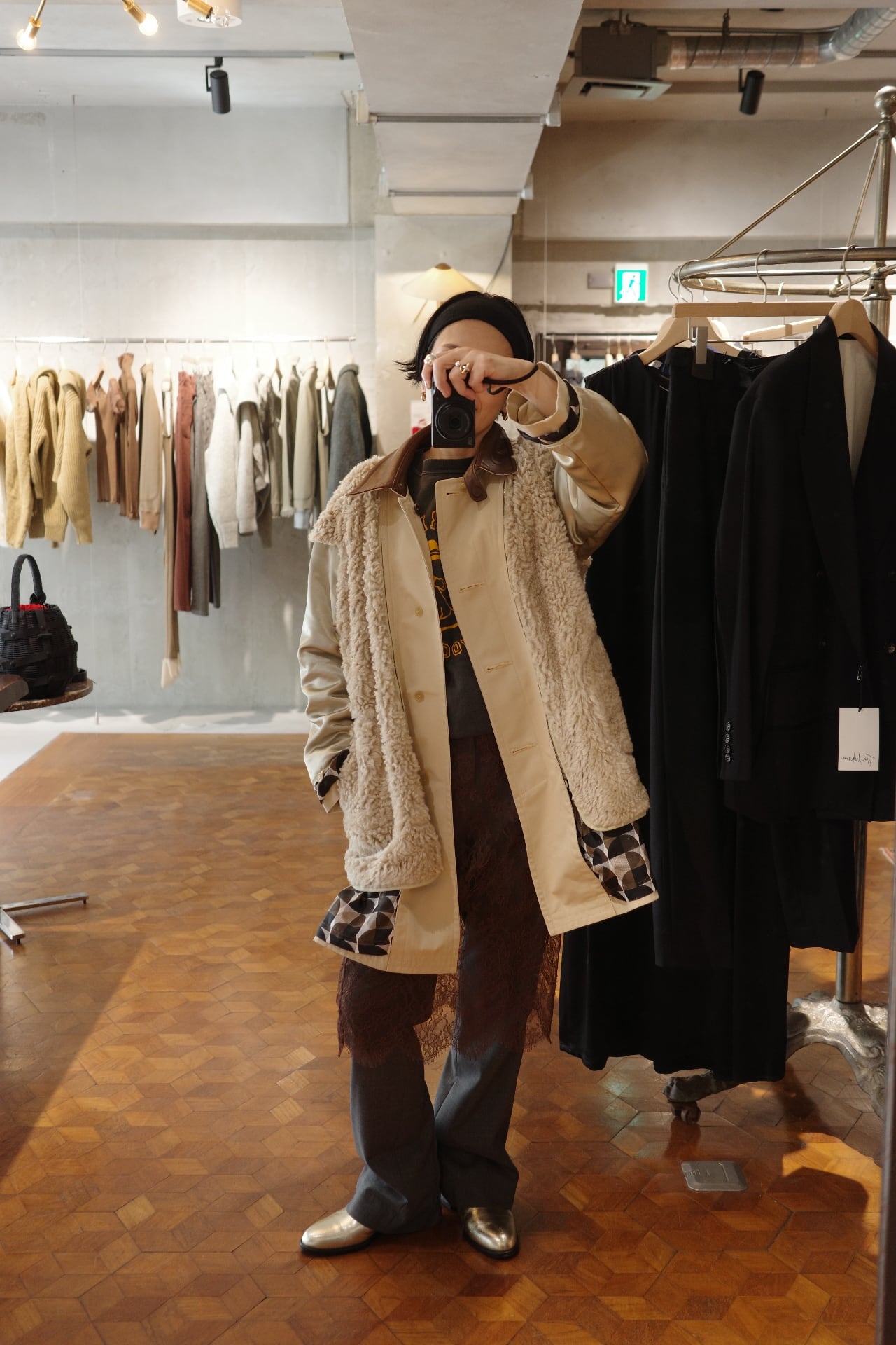 上質な糸の自然な光沢ときめ細やかさに、しっかりと厚みと膨らみがある風合いに仕上げたコットンポプリンを使用したステンカラーコート。裏地はジオメトリック柄を施したキュプラ素材を使用しており、着脱可能なライナーに保湿性に優れたボアフリースを使用しております。表地でそのまま着るスタイル、
