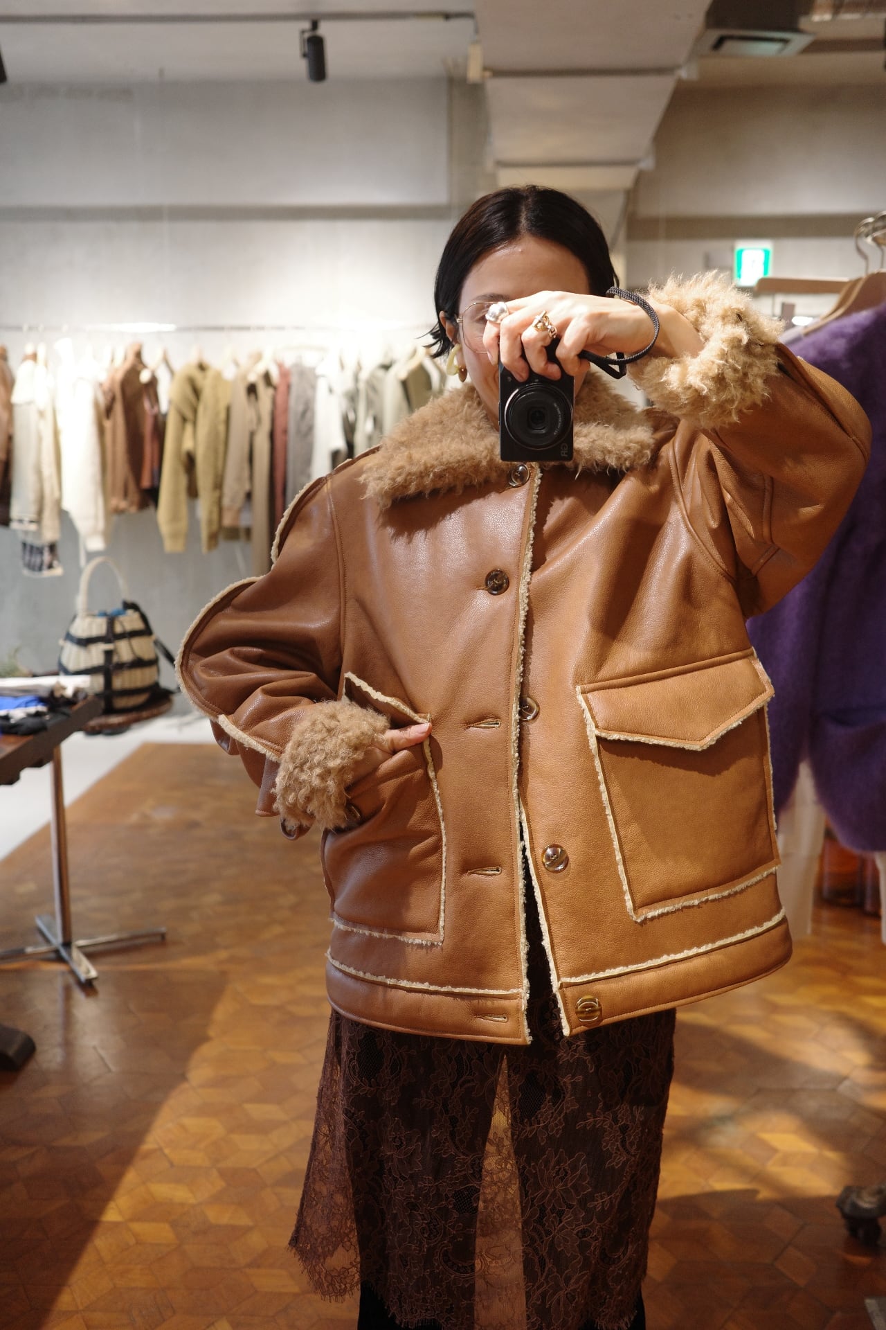 color/TAN FAUX SHEARL ING