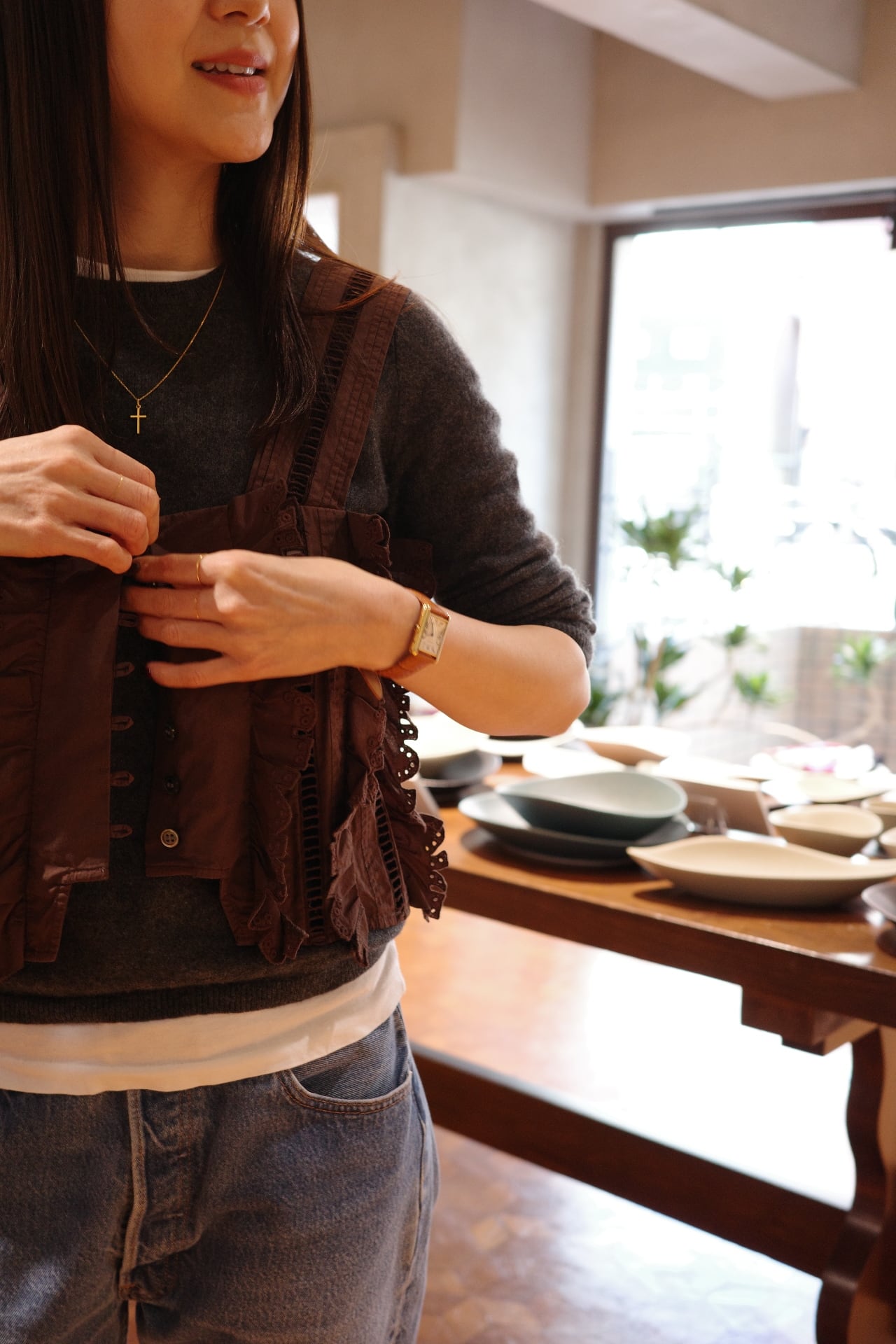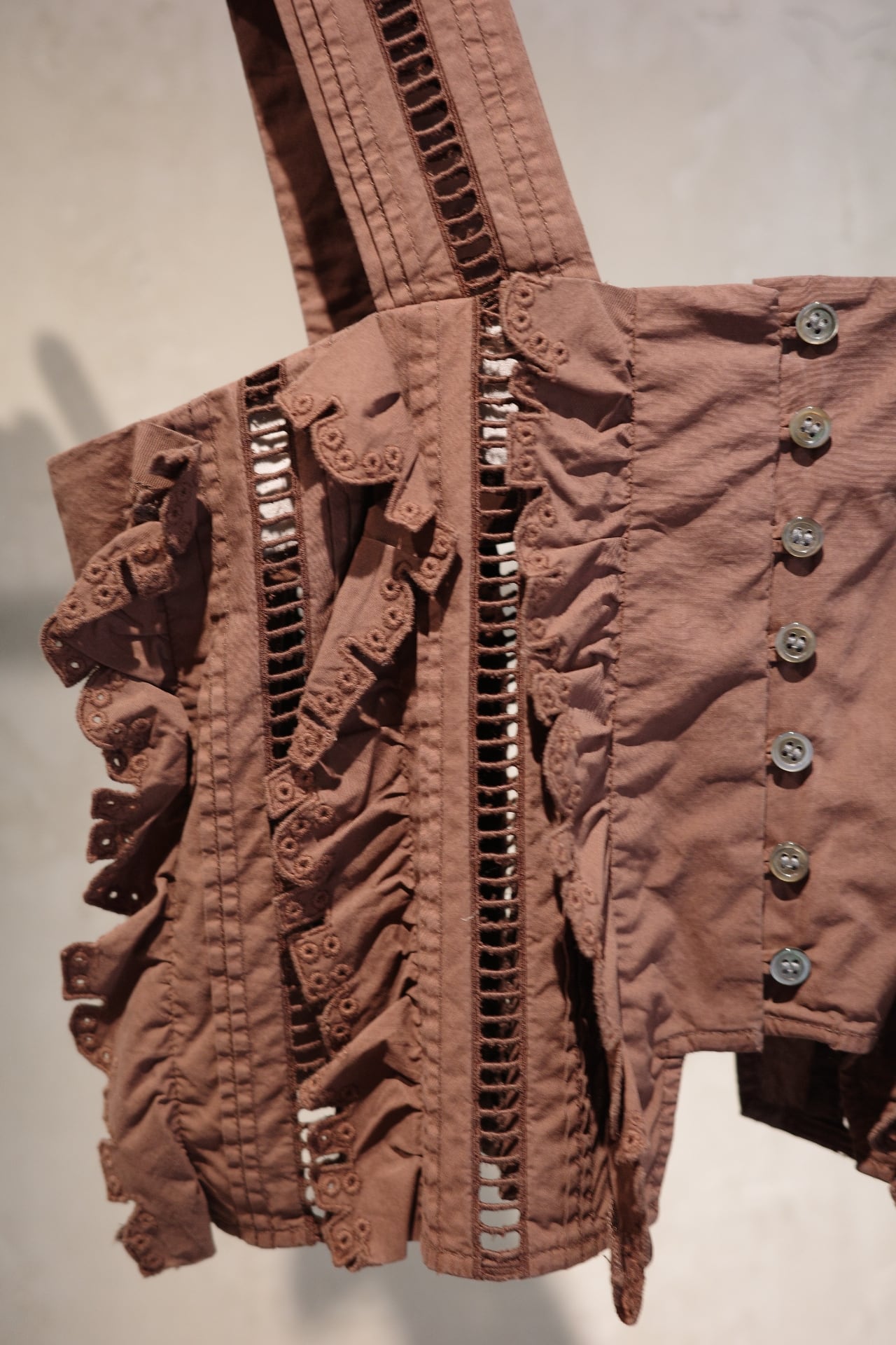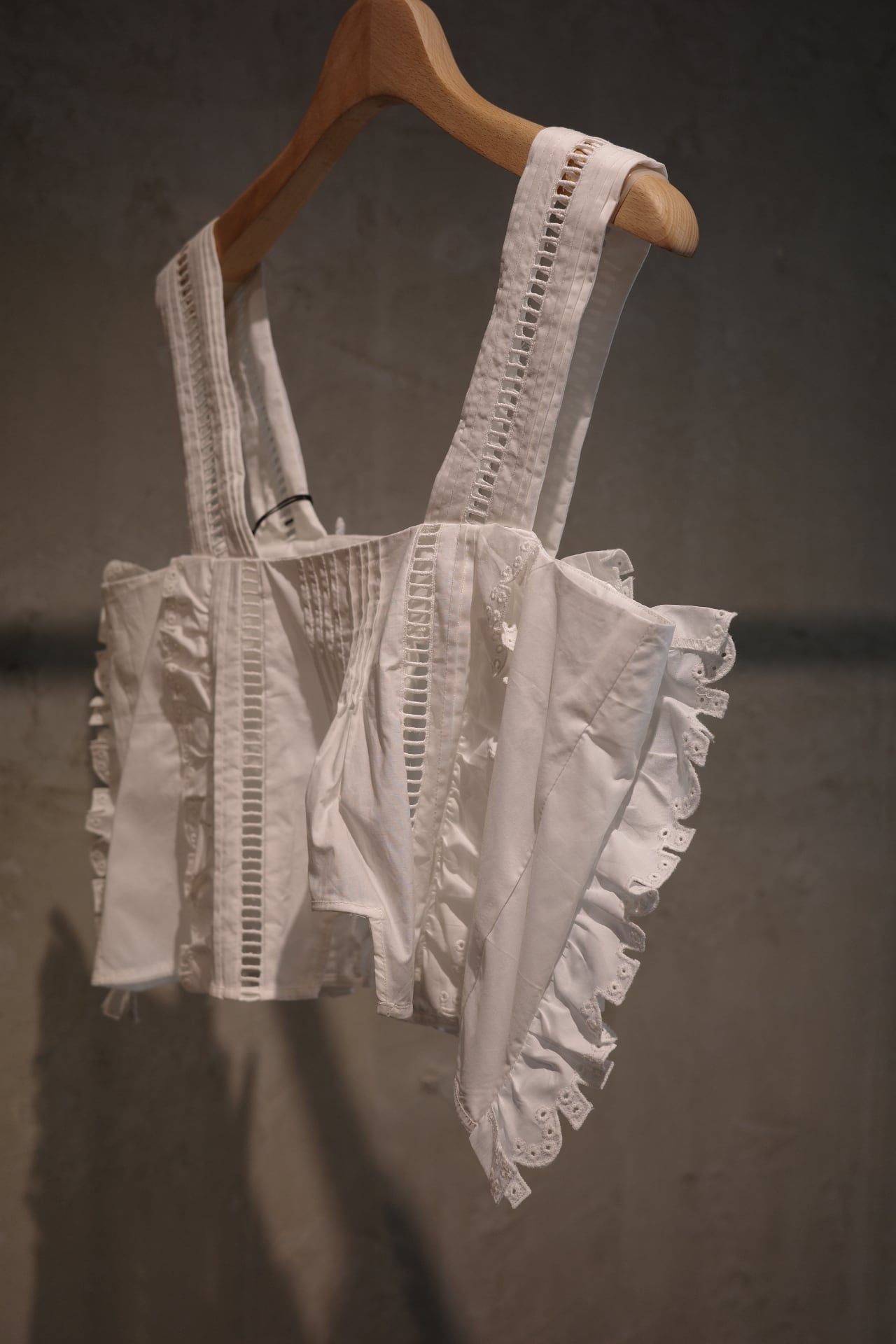 size/one size color/しろ、ネイビー、黒、茶(ikasa.限定) quality/綿100% カットラッフルのキャミソールです。夏場はもちろん、冬物素材とも相性良いのです! シーズンレスに使っていただけ、ずっと飽きない好きなデザイン。。。 茶色はikasa.別注カラーとなってます。特別なカラーでとてもステキに仕上げてくださいました!