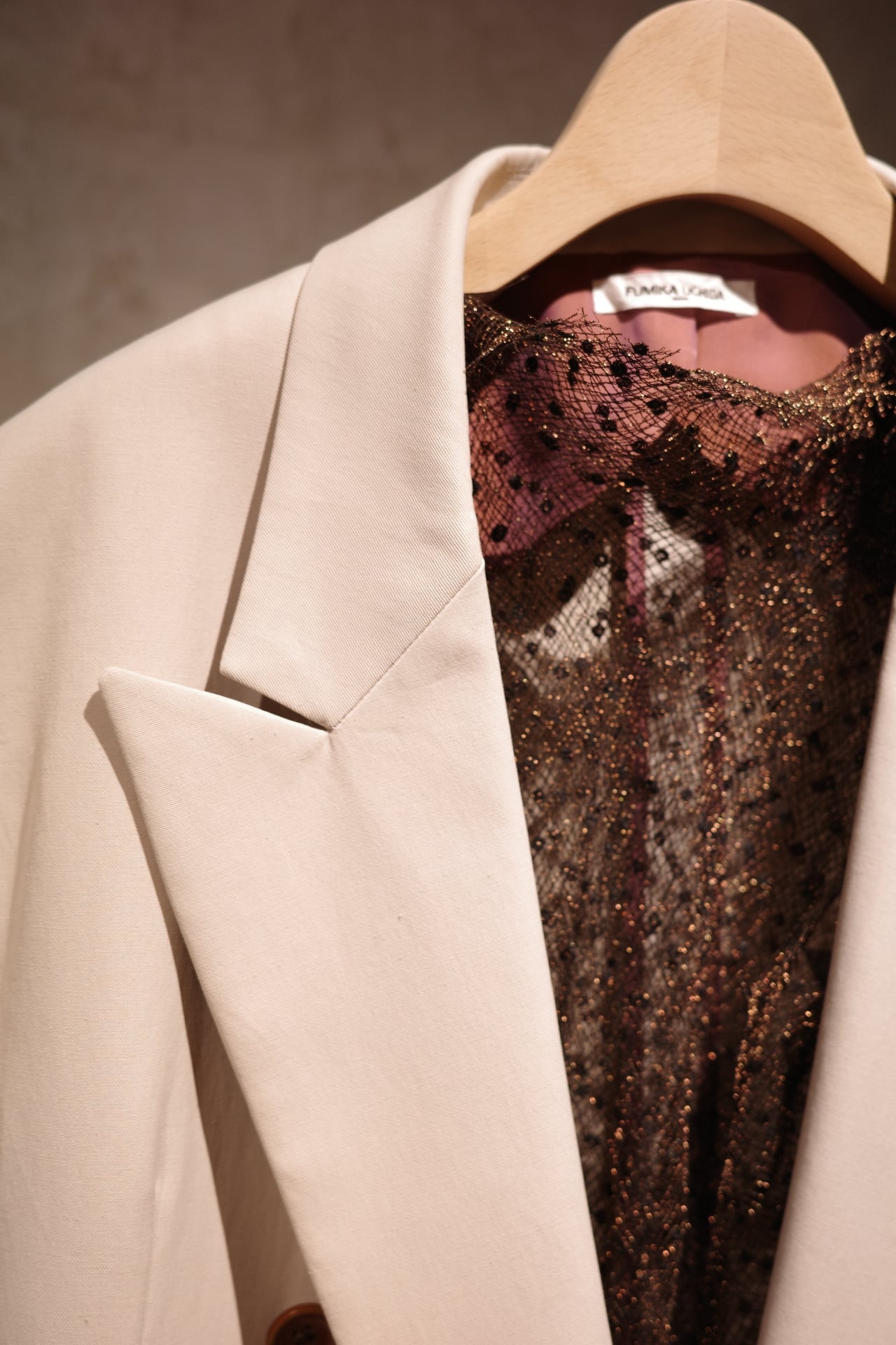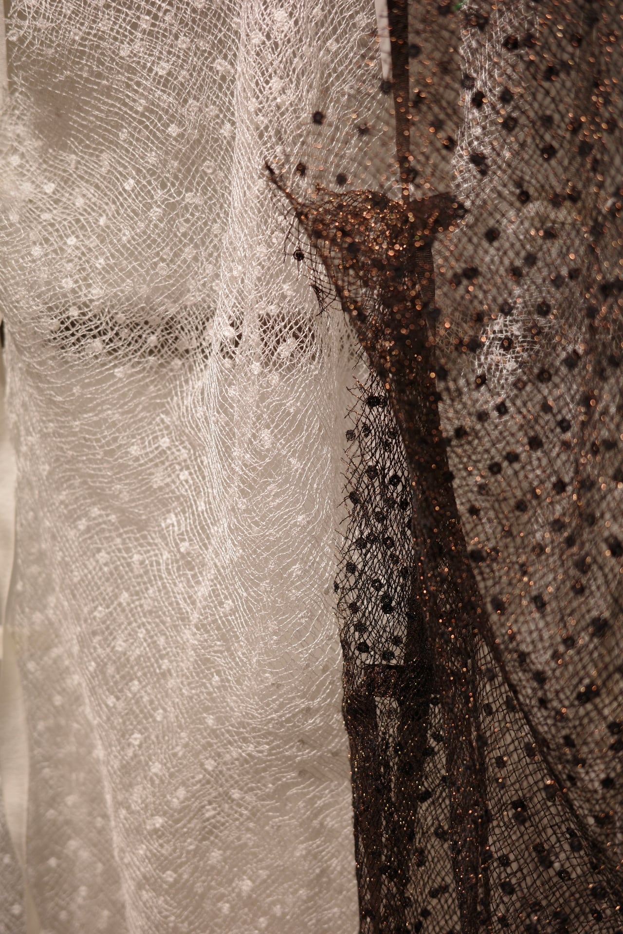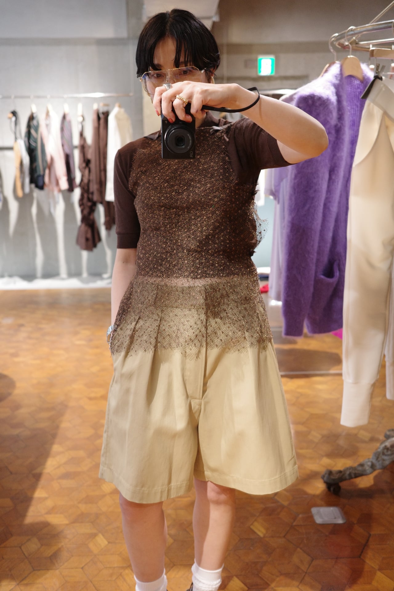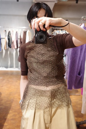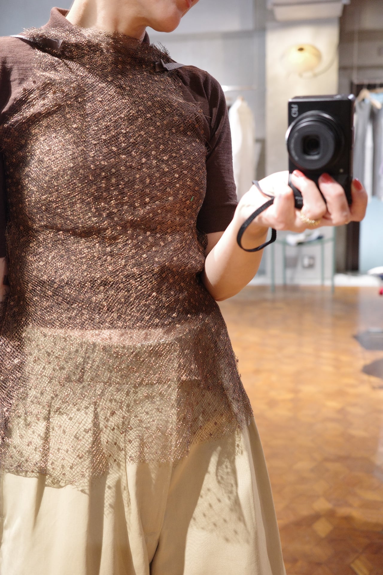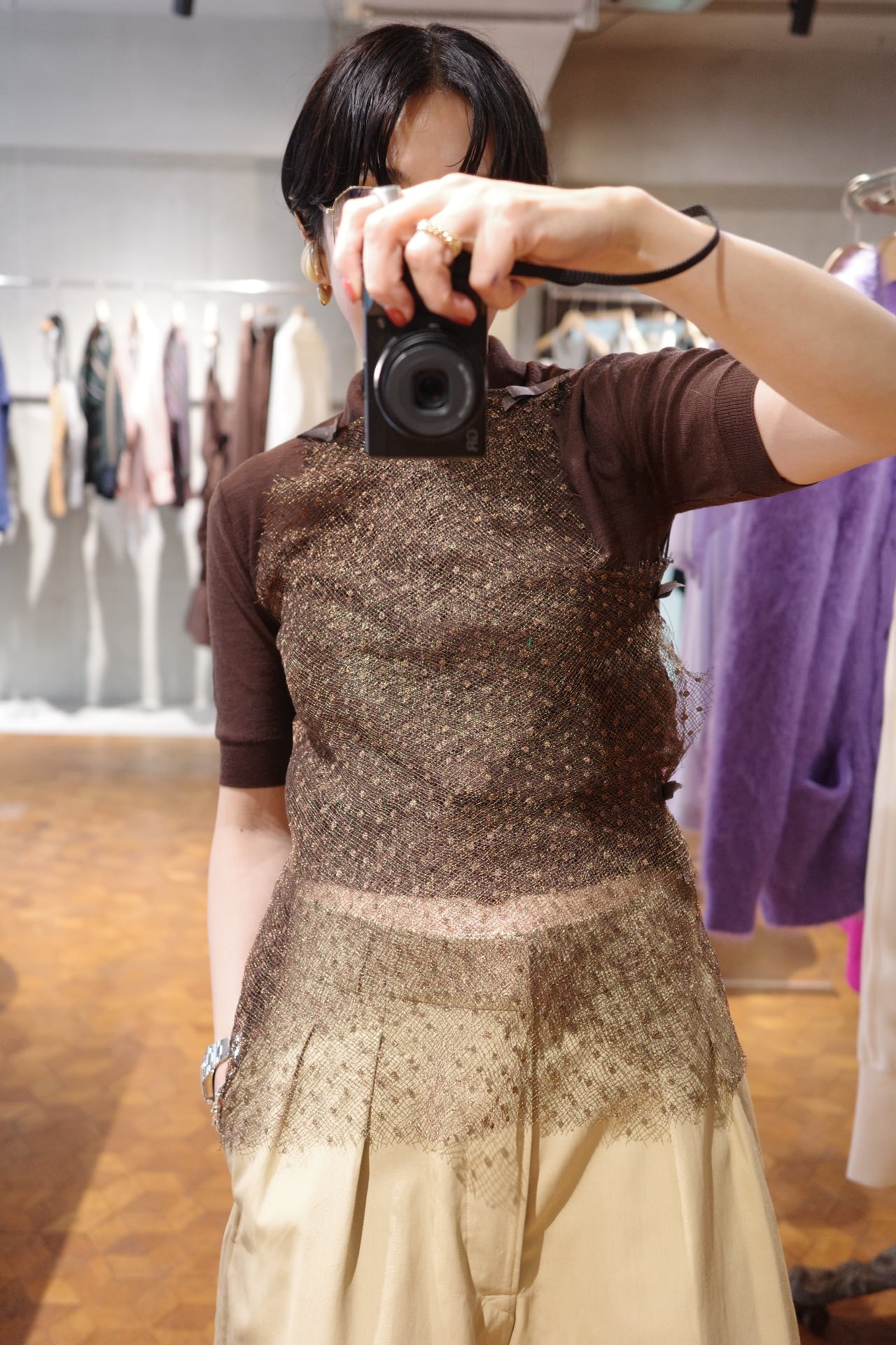 繊細でランダムなメッシュが美しいドットチュール素材のエプロントップ。