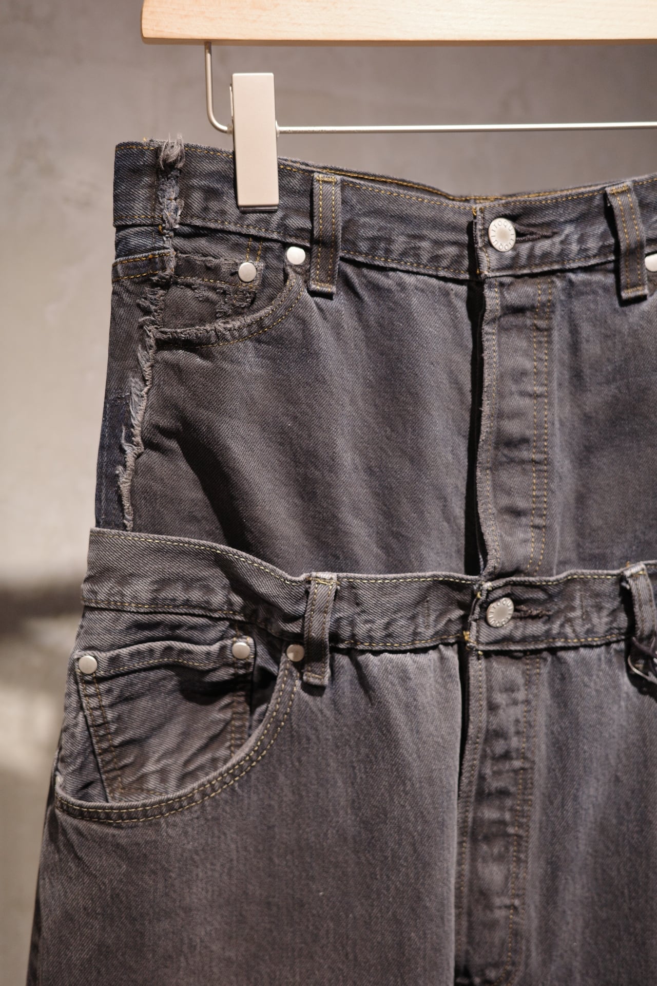 1st シーズンから展開している W WAIST DENIM 古着をリメイクしているので一点一点カラーもヴィンテージ感も異なり、唯一無二の一点なのです。