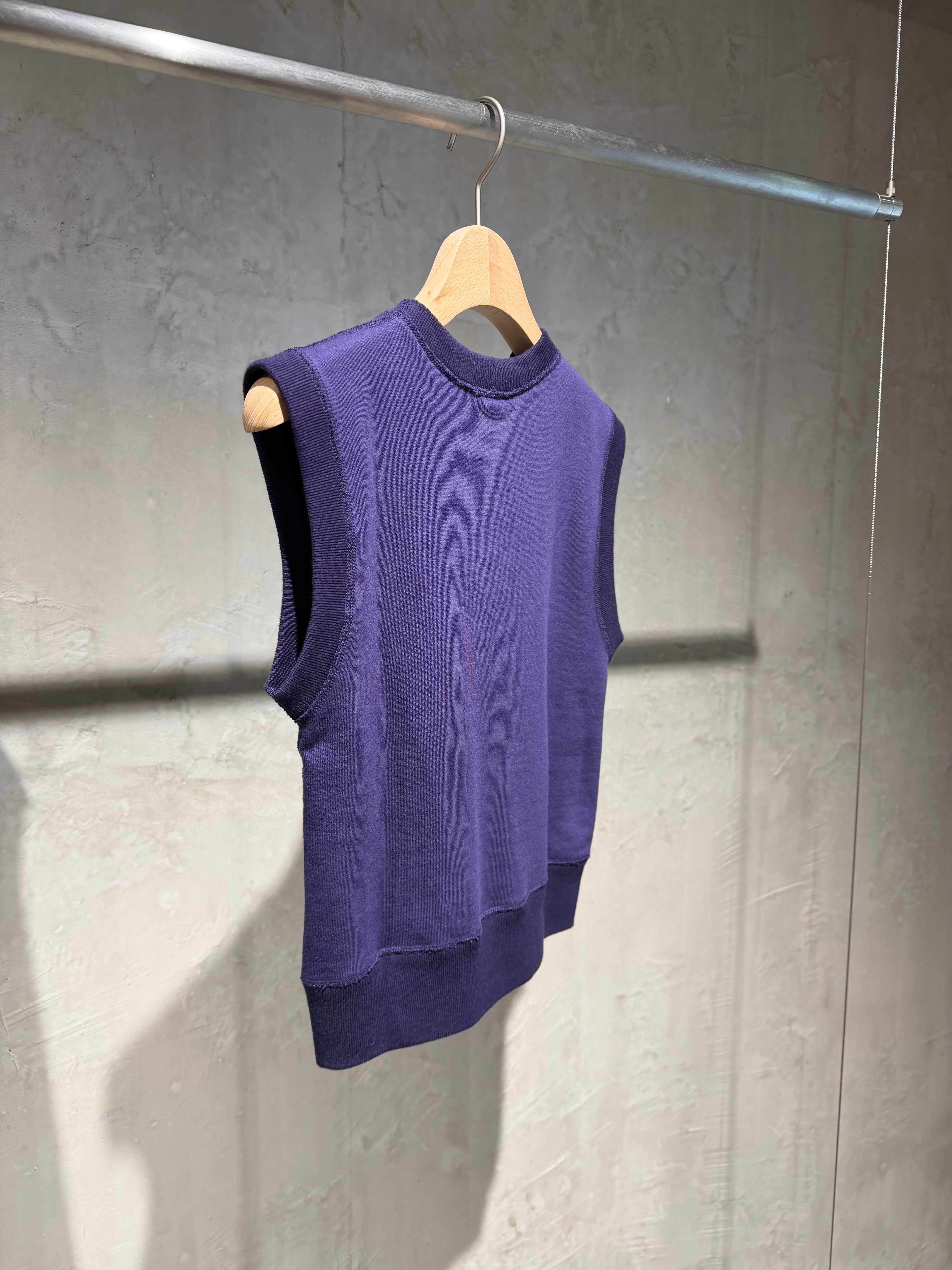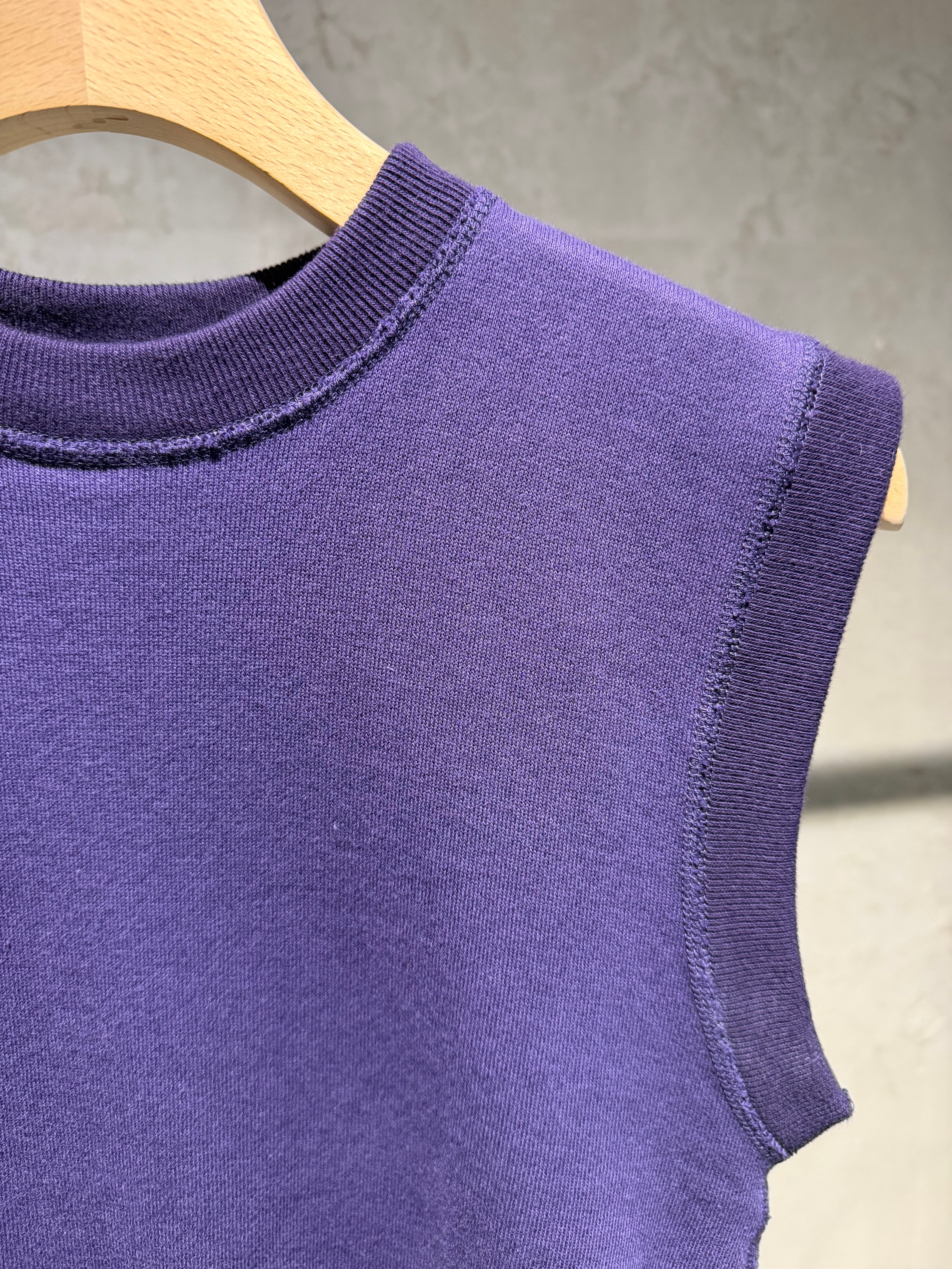 size/S、M color/purpull Material/cotton100% SIZE S→着丈48 身幅38.5 ※同シリーズのgrayとは生地が異なるため 金額は異なります。 また、採寸は多少の誤差がございます。 あらかじめご了承くださいませ。 そのまま一枚でも、ベストぽく着てもサマになる ノースリーブのスウェットです。